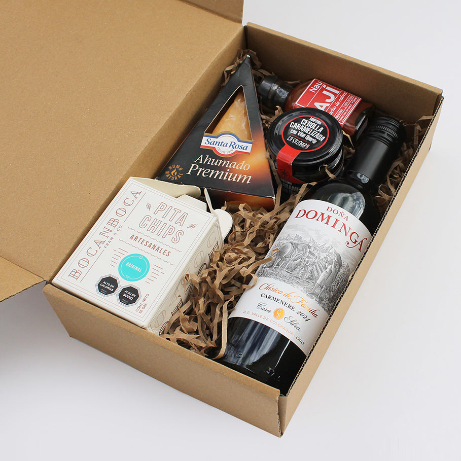 Presentado en cajita kraft y tarjeta de saludo con logo corporativo
