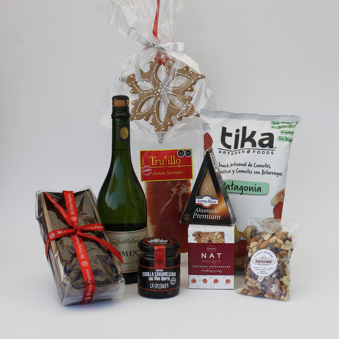 Presentado en caja kraft natural, negra o blanca con cinta y tarjeta de saludo
