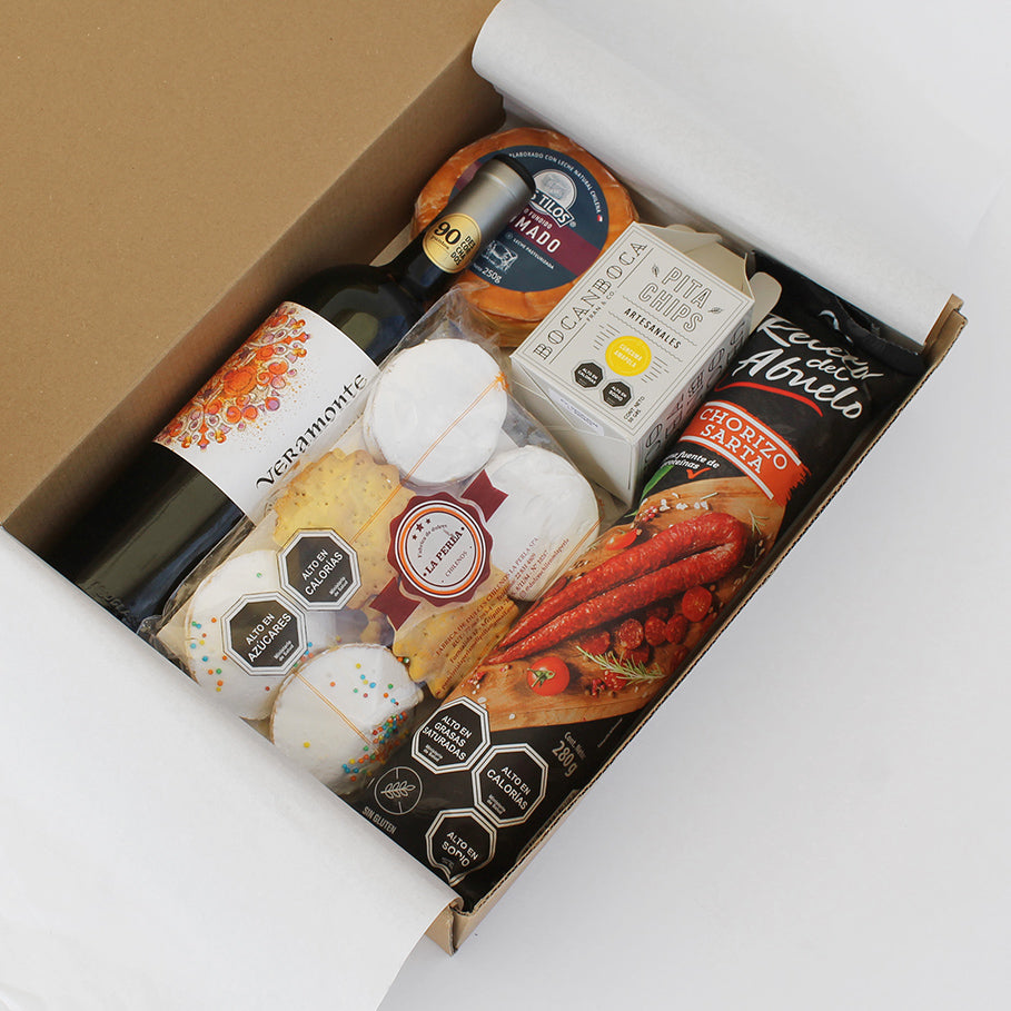 Presentado en caja kraft y tarjeta de saludo con logo corporativo