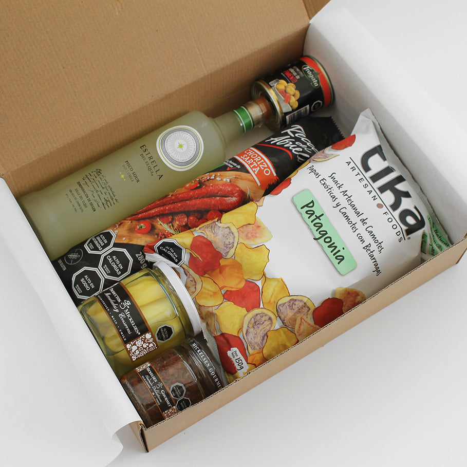 Presentado en caja kraft con tarjeta de saludo con mensaje y logo