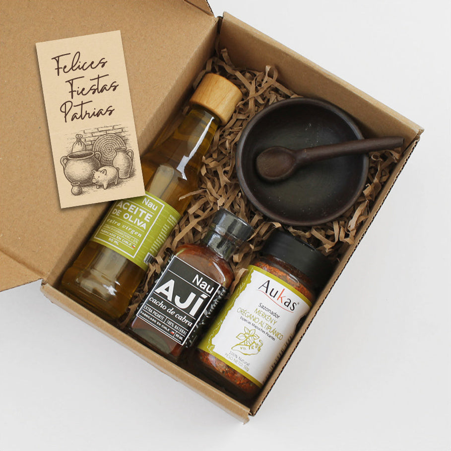 Presentado en cajita kraft con sticker de saludo y logo corporativo