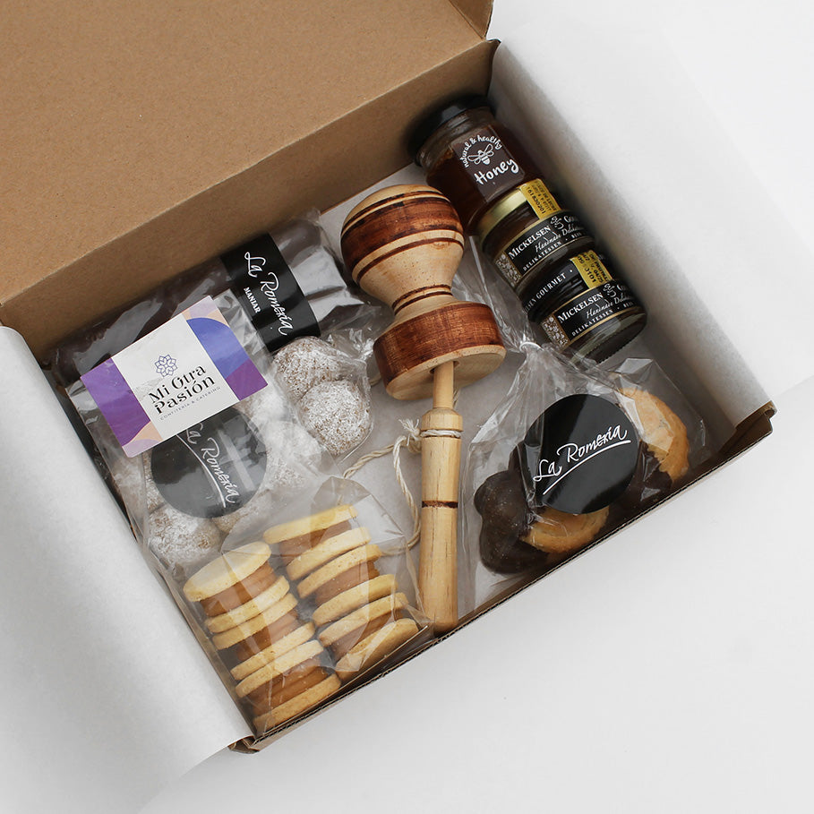 Presentado en cajita kraft y tarjeta de saludo con logo corporativo